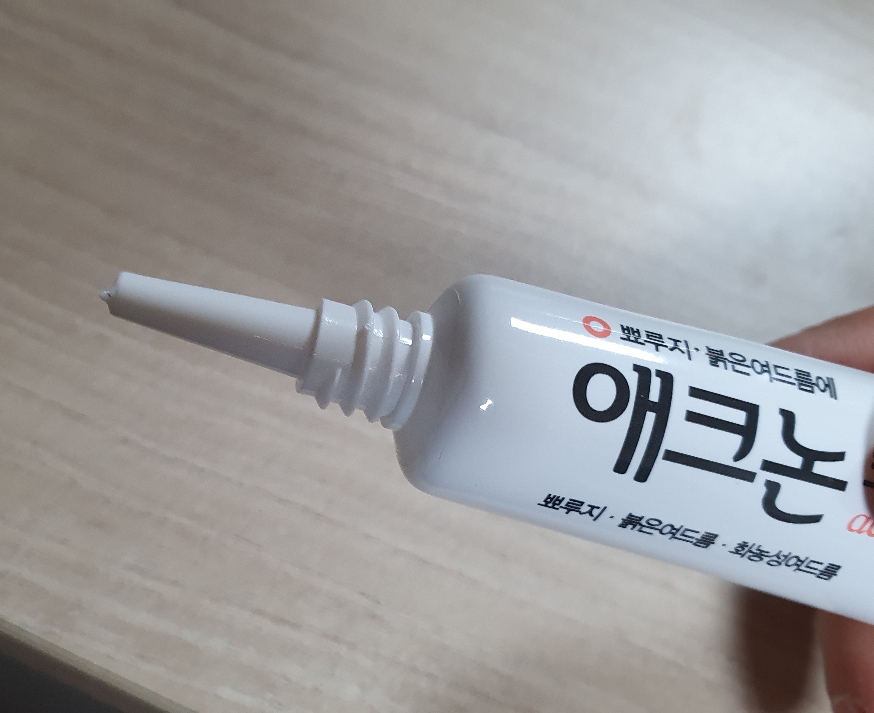 애크논크림을 직접 구입하여 사용해보았습니다. 우선 외관상 특이한 점은 다른 연고제와 달리 토출구가 길고 가늘게 되어있어 양조절이 용이했습니다.